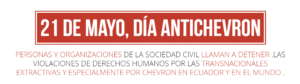 Chevron se niega a pagar la reparación a más de 30 000 indígenas y campesinos de la Amazonía. En el 2011 el Tribunal Supremo de Ecuador sentenció a Chevron