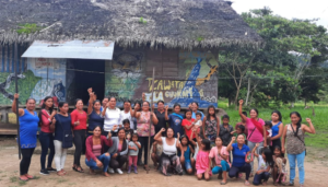 Iniciamos con la pregunta ¿Qué es Sumak Kawsay? Las respuestas fluyen alrededor de la chicha de yuca, la pesca, vivir con aire puro y poseer un territorio. La actividad humana que transforma la naturaleza, es un trabajo que se encuentra armonizado en conjunto comparten las compañeras. La conclusión fue que esta relación tierra-comunidad es la que genera la economía en territorio, el Sumak Kawsay.