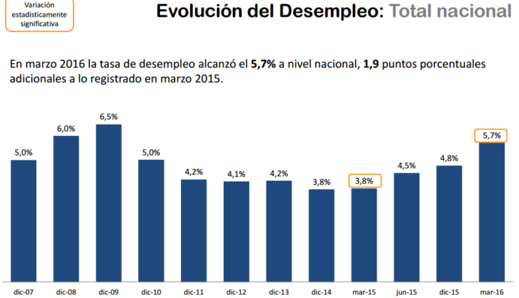 El desempleo se incrementó 1.9% desde marzo del 2015 hasta marzo de este año. Esto quiere decir que existen 166 mil personas que se convirtieron en nuevos desempleados a nivel nacional.