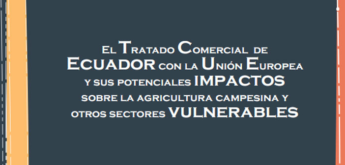 Ecuador Decide, junto a CDES (Centro de Derechos Económicos y Sociales) y el IEE (Instituto de Estudios Ecuatorianos), han elaborado este informe sobre los potenciales impactos que en la agricultura campesina y otros sectores vulnerables tendría la implantación del Tratado Comercial de Ecuador con la Unión Europea.
