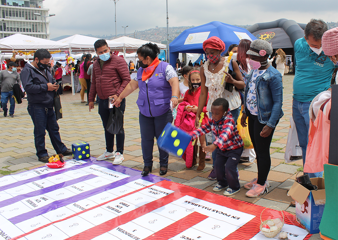 Dentro del programa se desarrolló una feria con productos de mujeres emprendedoras de toda la provincia de Pichincha, en donde las Promotoras demostraron sus conocimientos sobre violencia de género, compartieron con el público y mostraron sus destrezas con los originales productos de sus emprendimientos.