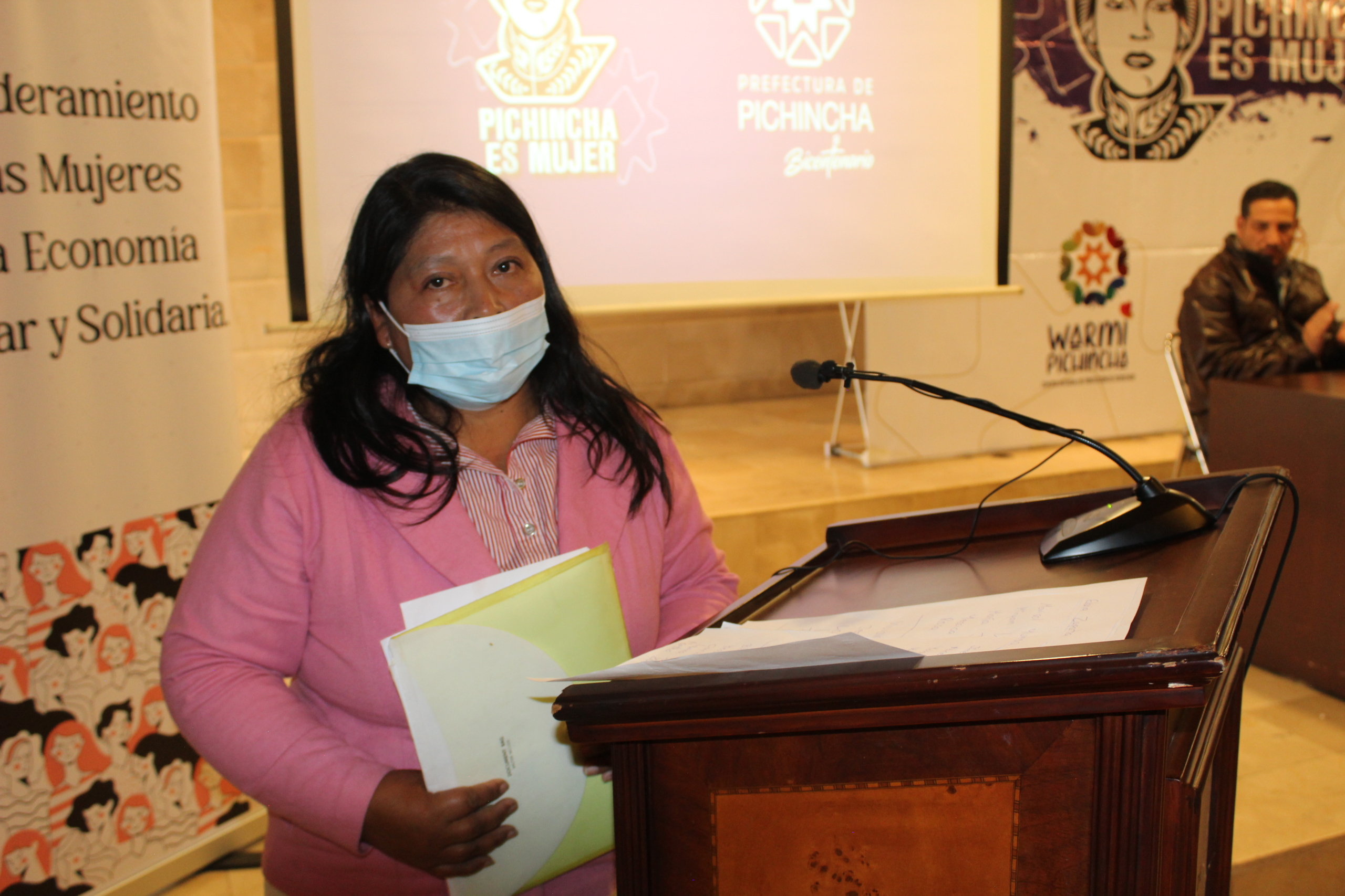 En el evento intervinieron Virginia Tipanluiza, representante de la asociación de producción agroecológica “BioVida”, y Gladys Sópalo representante de la caja de ahorro de productoras de cebolla “La Cebollita”. Ellas contaron desde sus experiencias como la organización entre mujeres “en base a relaciones de cooperación les ha permitido mejorar no sólo sus economías a través de créditos éticos y emprendimientos solidarios”, sino también redes de apoyo y de cuidado entre ellas.